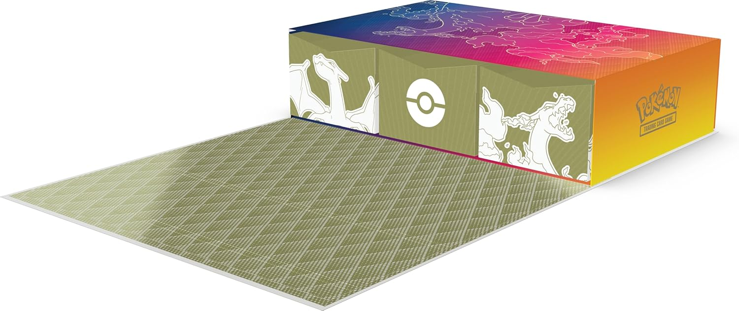 Celebrate the Sword & Shield Series and the era of Pokémon V, Pokémon VMAX, and Pokémon VSTAR with a hotshot who knows how to put all that power to good use! Charizard turns up the heat as a trio of promo cards with an etched foil treatment, and its Gigantamax form shows off blazing style on a playmat, metal coin, and set of card sleeves. Metal dice and condition markers round out this ultimate set of gameplay accessories. And as you open the huge stack of booster packs inside this box, take a journey through the Sword & Shield Series with an original booklet full of images and stats!